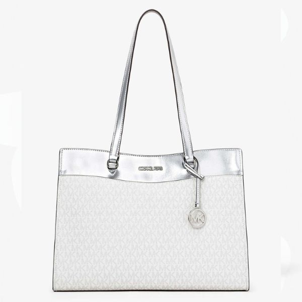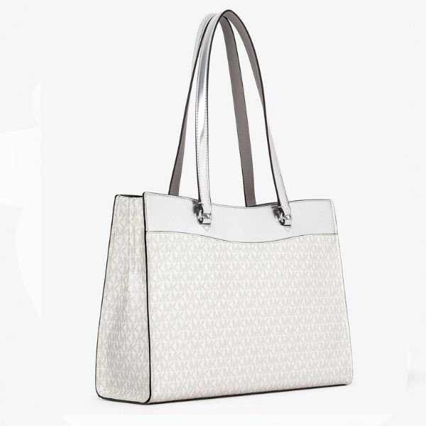 Make a statement with the Michael Kors Jet Set Large Logo Tote. Crafted in iconic signature-print coated canvas with refined leather trim, this spacious tote features multiple functional pockets—inside and out—to keep your essentials organized. The open top allows easy access, while the structured design ensures the bag keeps its shape. Perfect for work, travel, or daily carry, this tote strikes the perfect balance between utility and style.