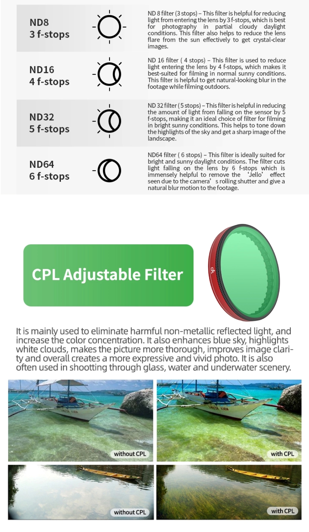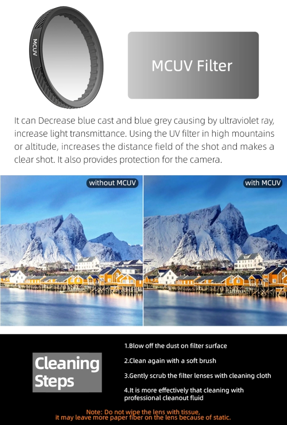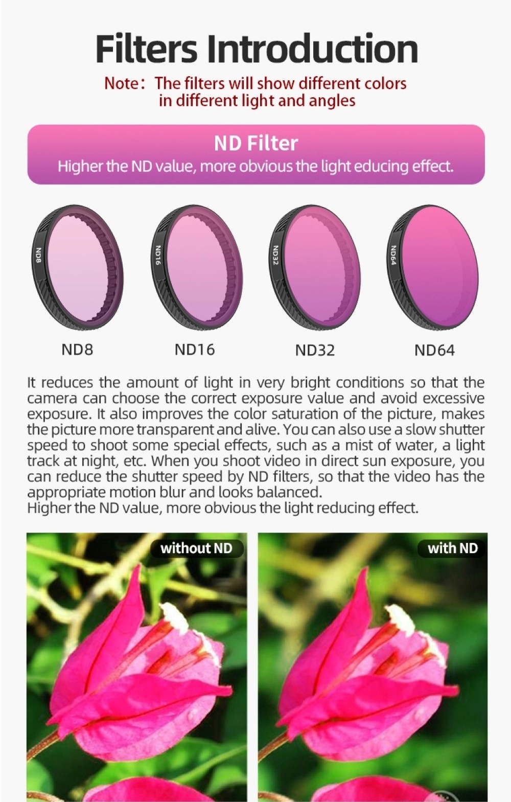 Filter types: MCUV (lens protector), CPL, and ND filters (ND8, ND16, ND32, ND64)