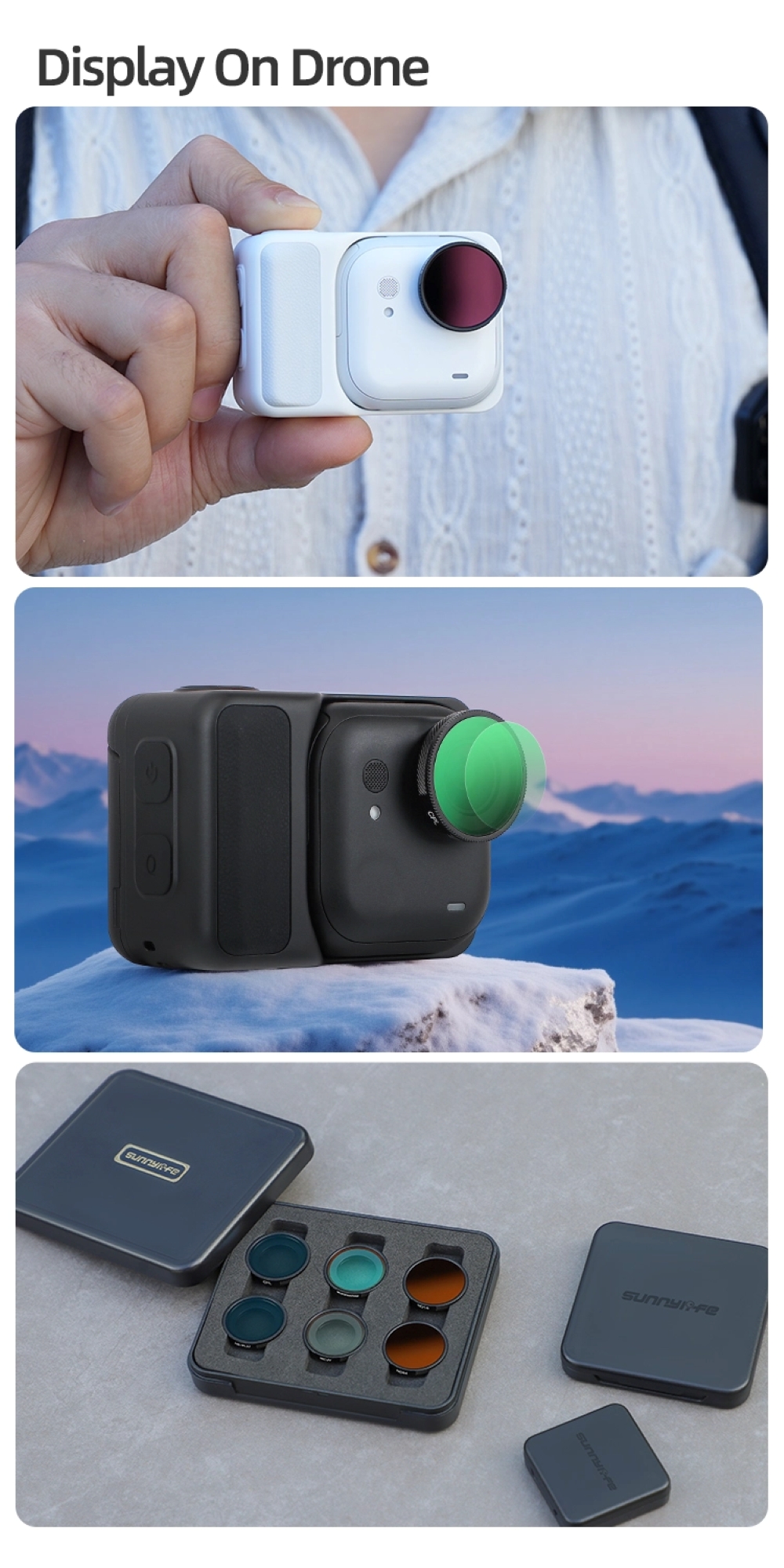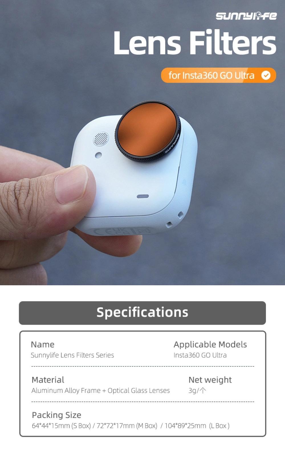 Upgrade your Insta360 GO Ultra with the Sunnylife Aluminum Filter Set designed to deliver professional-quality shots in any environment. This kit includes CPL, MCUV, and ND filters (ND8, ND16, ND32, ND64) to minimize glare, balance exposure, and protect your lens. Built with a lightweight aluminum alloy frame, each filter ensures durability and easy installation while keeping your shots clear and cinematic — perfect for outdoor and travel creators in the Philippines.
