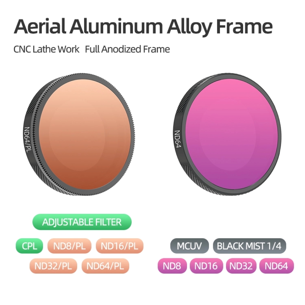 Multi-filter kit: Includes CPL, MCUV, and ND (ND8/ND16/ND32/ND64) filters for versatile shooting.