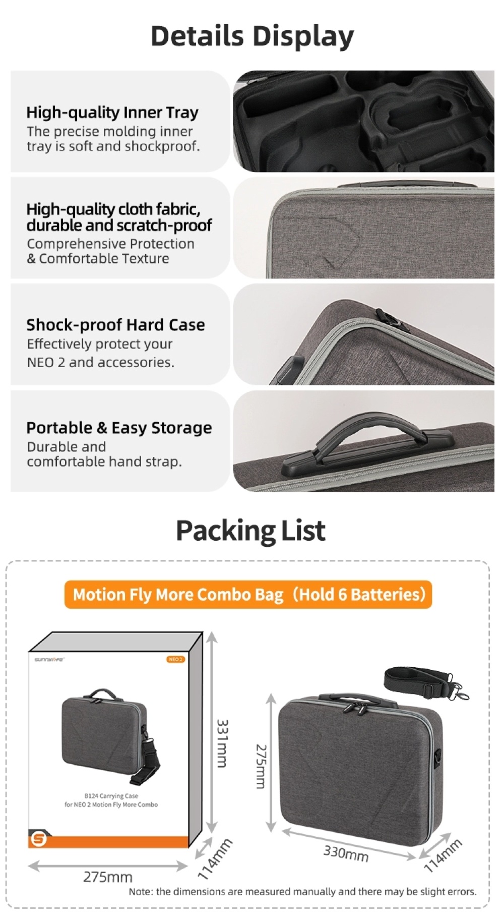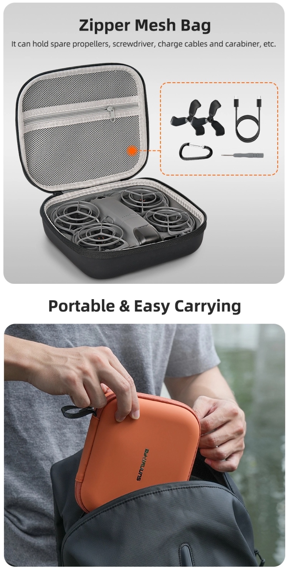 Sunnylife Protective Travel Bag for DJI Neo 2 Drone NE2-B122/NE2-B123/NE2-B124