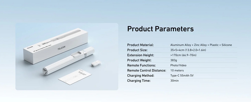 The TELESIN 1.8m Automatic Tripod Selfie Stick (P1-TSS-002) is designed for creators who need stability and flexibility. Built from durable aluminum alloy and ABS, it quickly transforms into a tripod with a gravity-activated system. The built-in Bluetooth remote makes hands-free shots simple, while the universal phone clamp works with major brands like iPhone, Samsung, Huawei, Xiaomi, and Oppo. Perfect for vlogging, live streaming, group shots, and travel.