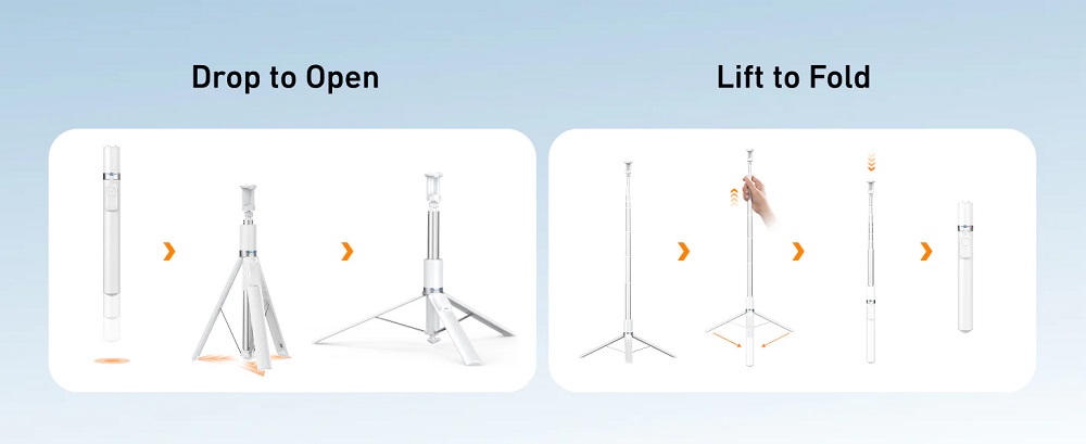 - Gravity Auto-Open Tripod: Opens instantly with no fuss, for stable shots.