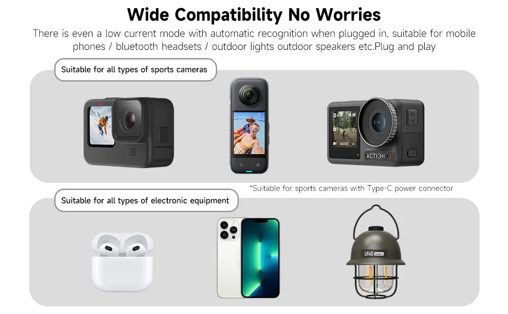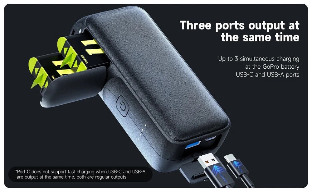 High-Capacity 10000mAh Power Bank: Provides multiple full recharges for your GoPro batteries and USB-powered devices on the move.