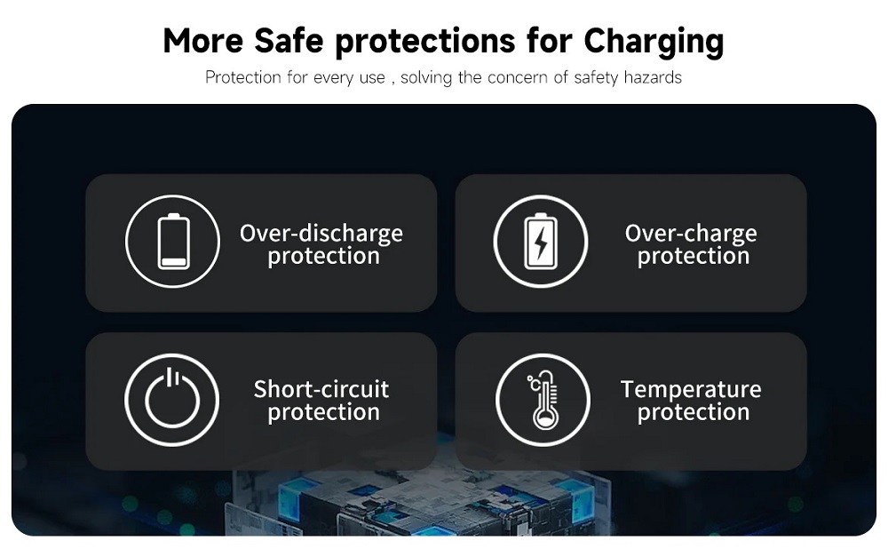 Smart Charging Protection: Built-in chip intelligently manages voltage, temperature, and charge cycles for safe, efficient performance.