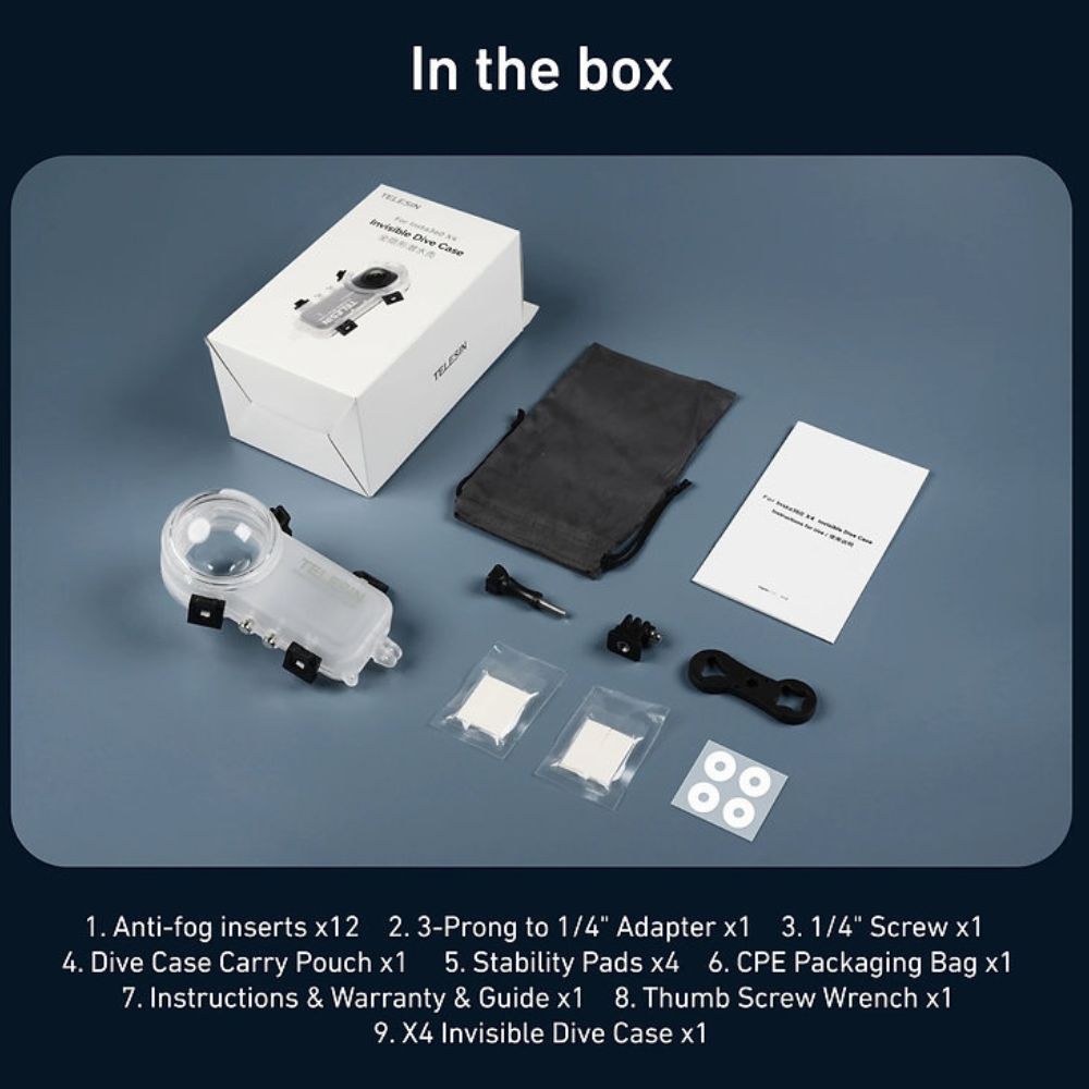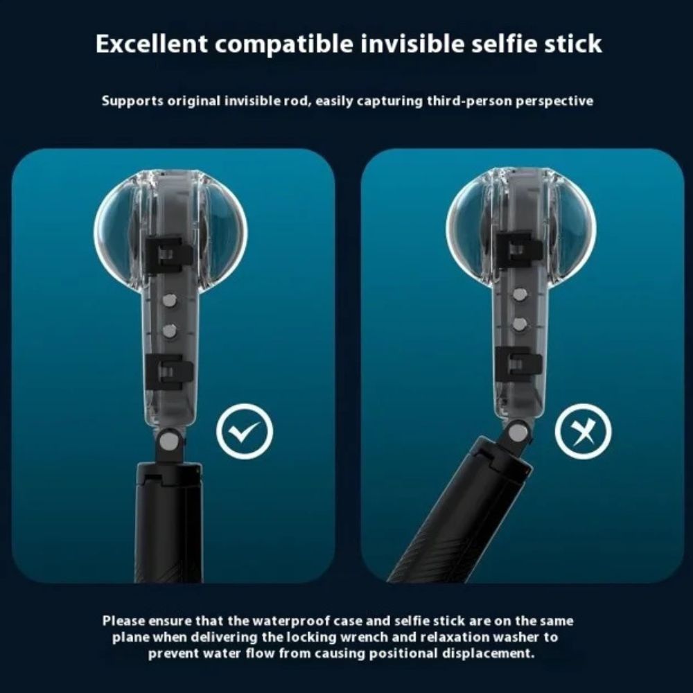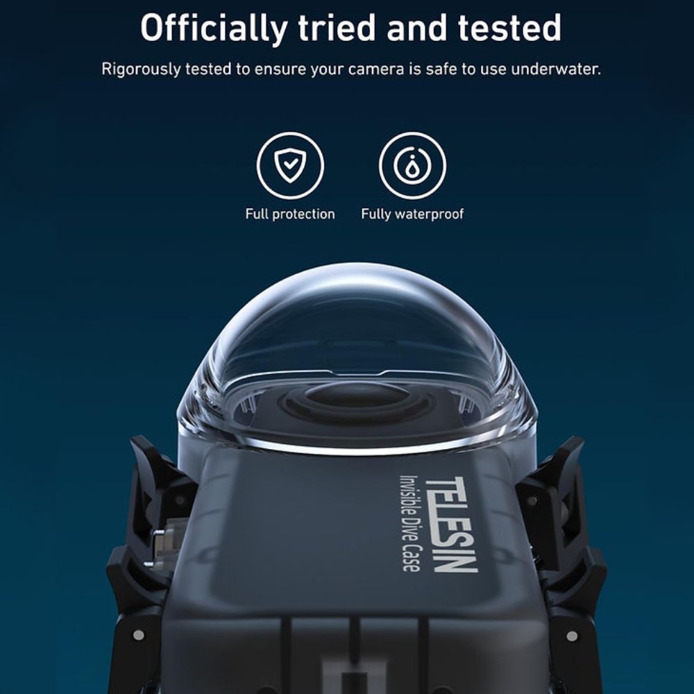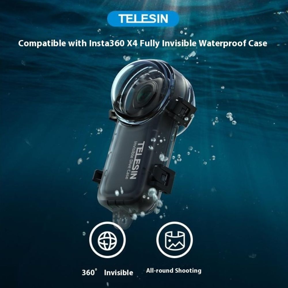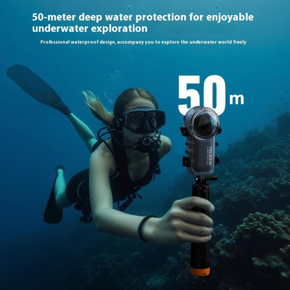 insta360 x4 dive case, 50m waterproof housing, invisible underwater case, optical glass lens cover, insta360 x4 waterproof shell, telesin protective housing, underwater 360 camera case, invisible selfie stick compatible, insta360 x4 underwater accessory, shockproof dive case