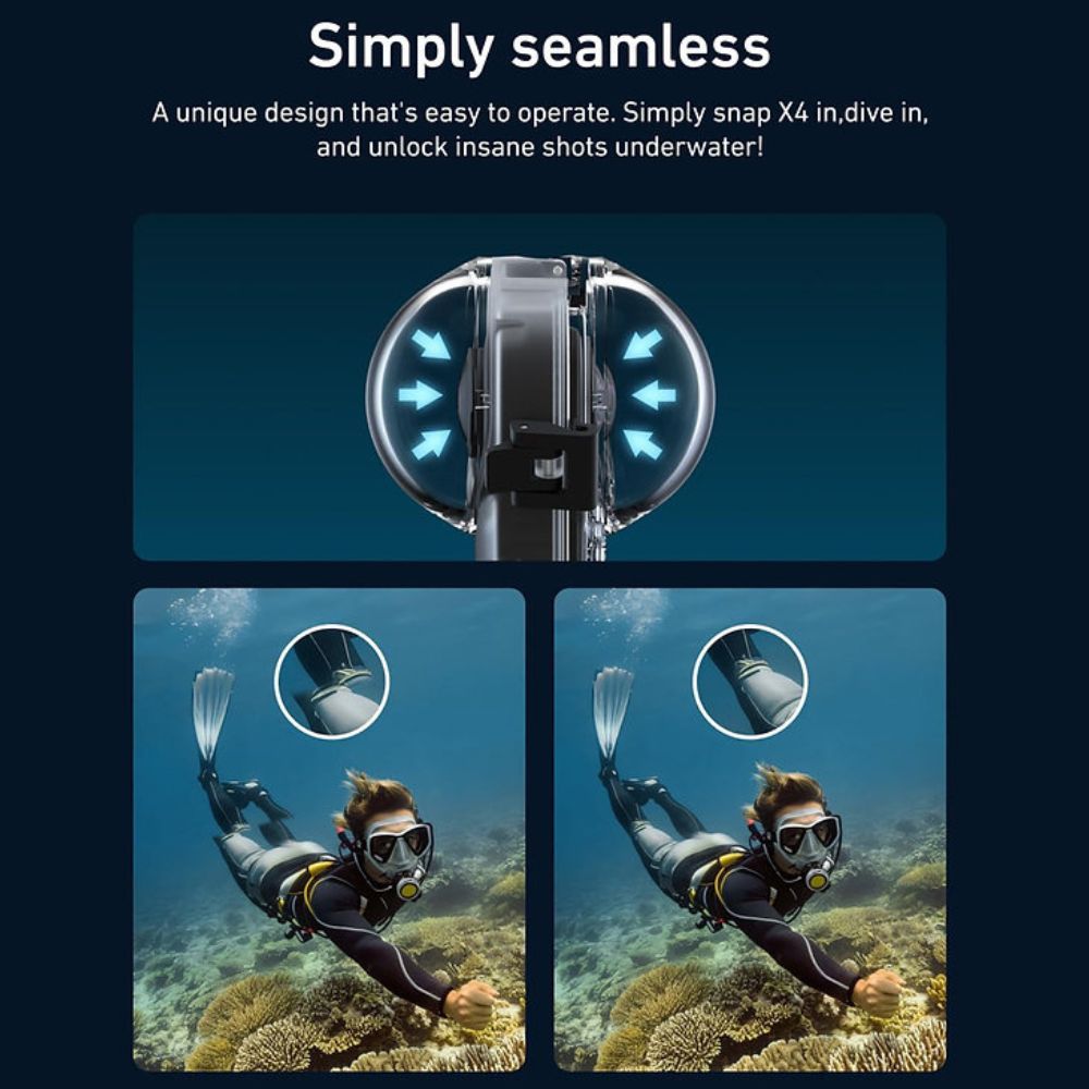 - 50 m Waterproof Dive Housing: Safely submerge Insta360 X4 up to 50 m for diving and snorkeling.