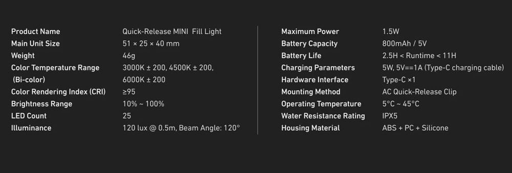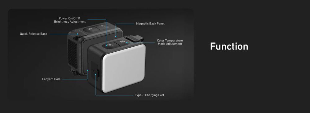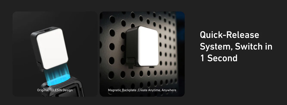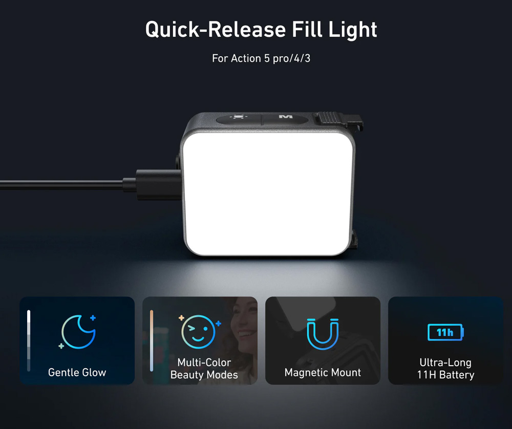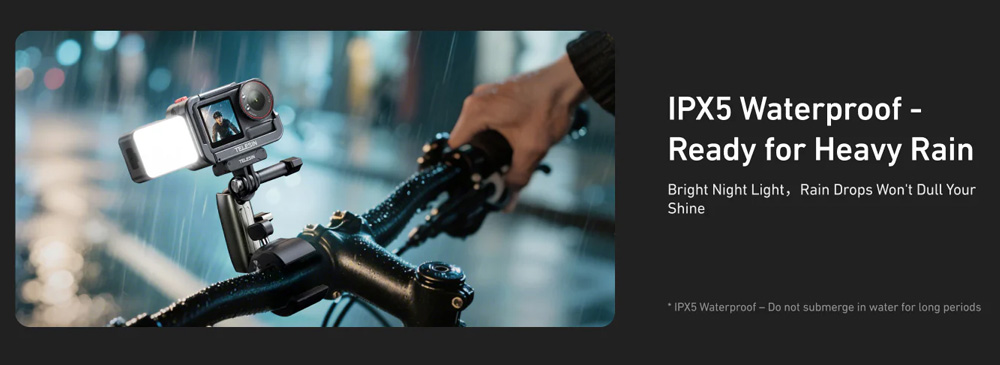Brighten your vlogs and action shots with the TELESIN Quick Release Mini Fill Light (S5-BGD-08-TDJ). Designed for DJI Osmo Action 3, 4, and 5 Pro, this compact LED light features a magnetic quick-release system, making it fast and easy to mount. With waterproof IPX5 protection, it’s built for outdoor, travel, and extreme conditions. Its powerful illumination enhances low-light recording, ensuring clear, vibrant footage day or night.