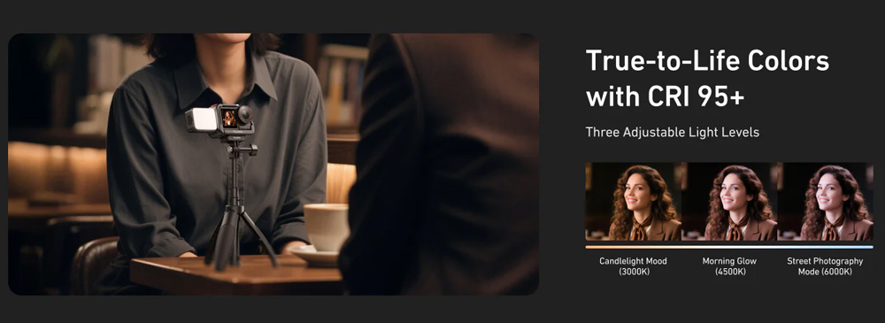 - DJI Osmo Action Fill Light: Compatible with Osmo Action 3, 4, and 5 Pro cameras.