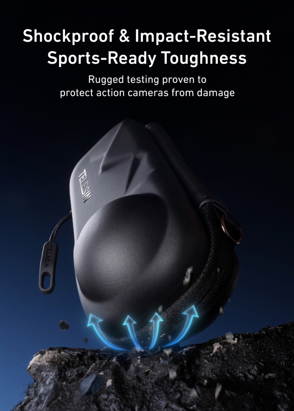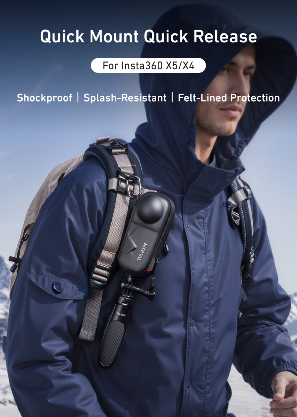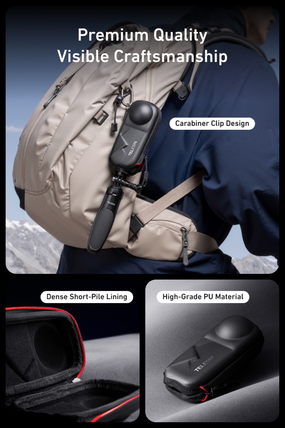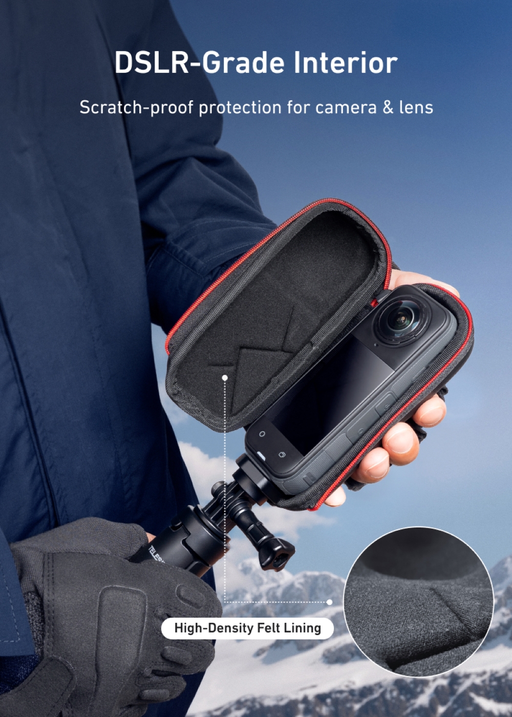Telesin Mounting Portable Semi-Open Zipper EVA Bag w/ Carabiner for Insta360 X5, X4 Cameras S6-PRC-19-TIS