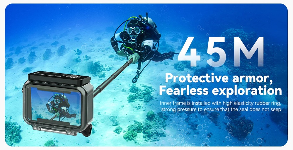 Up to 45M Waterproof Depth: Provides full protection for your DJI Action 3, 4, and 5 cameras, allowing you to shoot at depths up to 45 meters underwater.