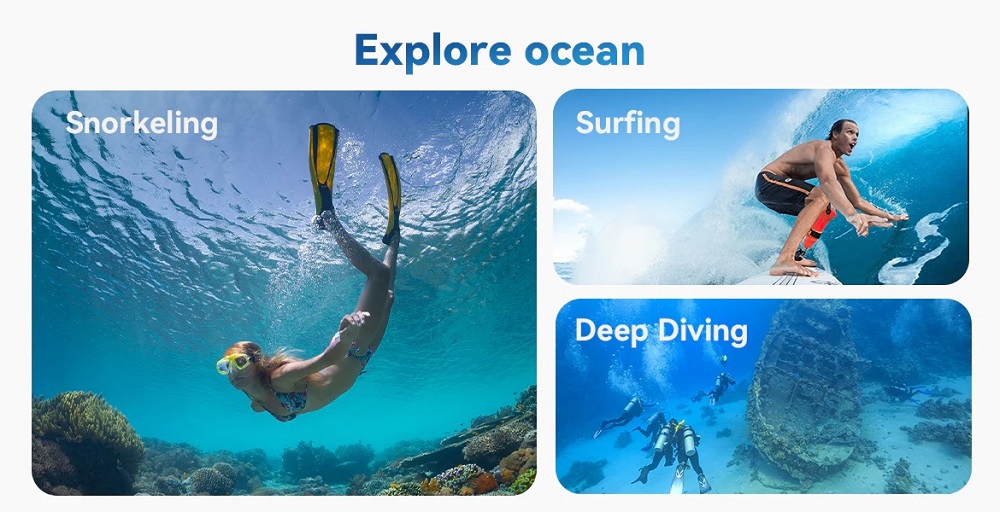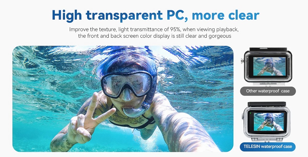 Crystal Clear Lens: Transparent lens ensures high-quality, clear images and videos underwater, with no distortion.