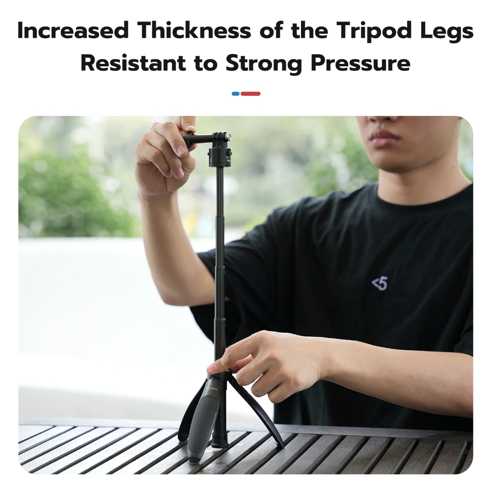Capture stable, hands-free shots wherever you go with the TELESIN Mini Quick-Release Selfie Stick Tripod (S1-MNP-02). Crafted with lightweight aluminum and reinforced ABS, this mini stick transforms into a tripod in seconds. Its quick-release mount makes swapping cameras or phones effortless. Ideal for vlogging, travel content, selfies, time-lapses, and daily use.